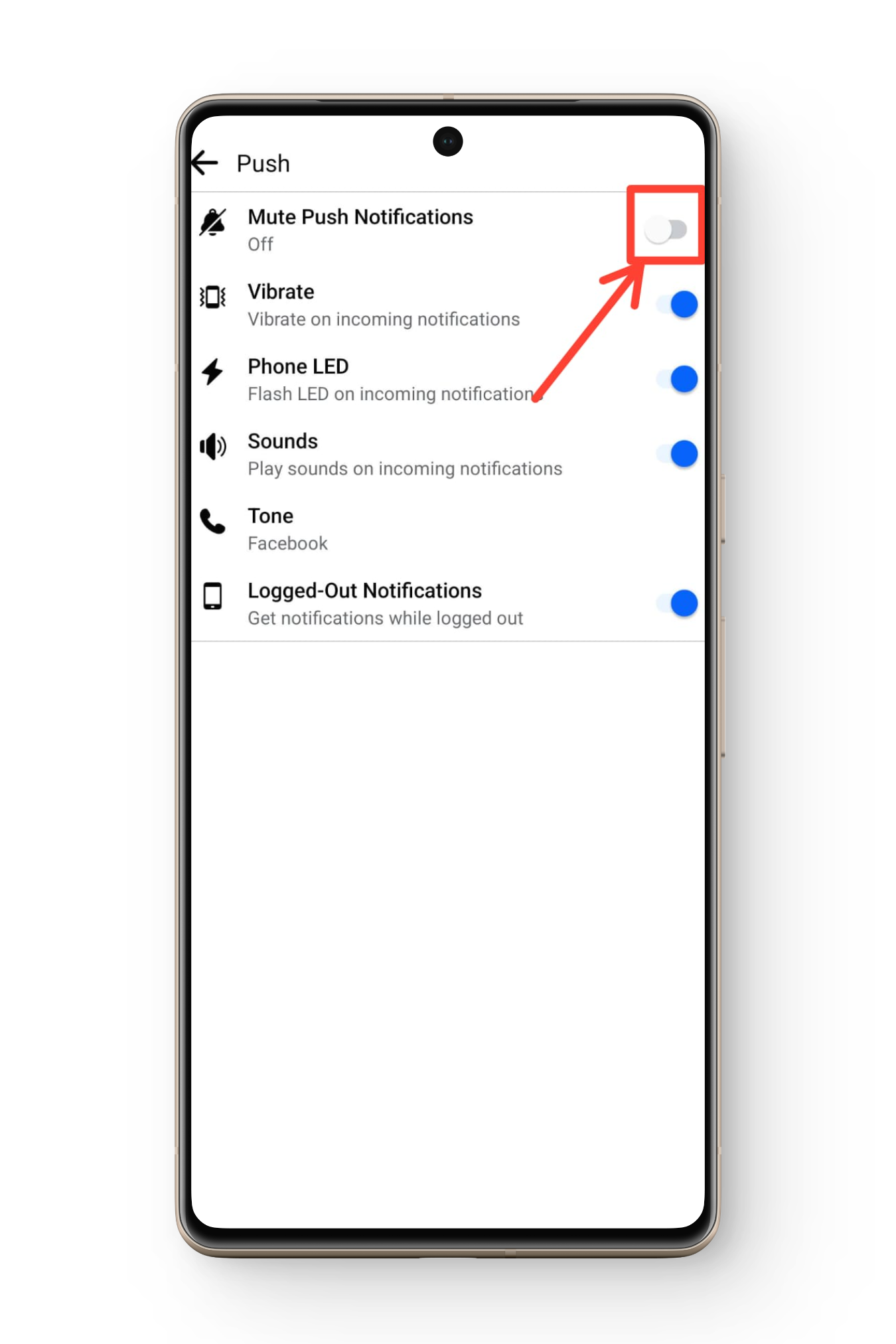 - Here, tap on Push and toggle on Mute Push Notifications.