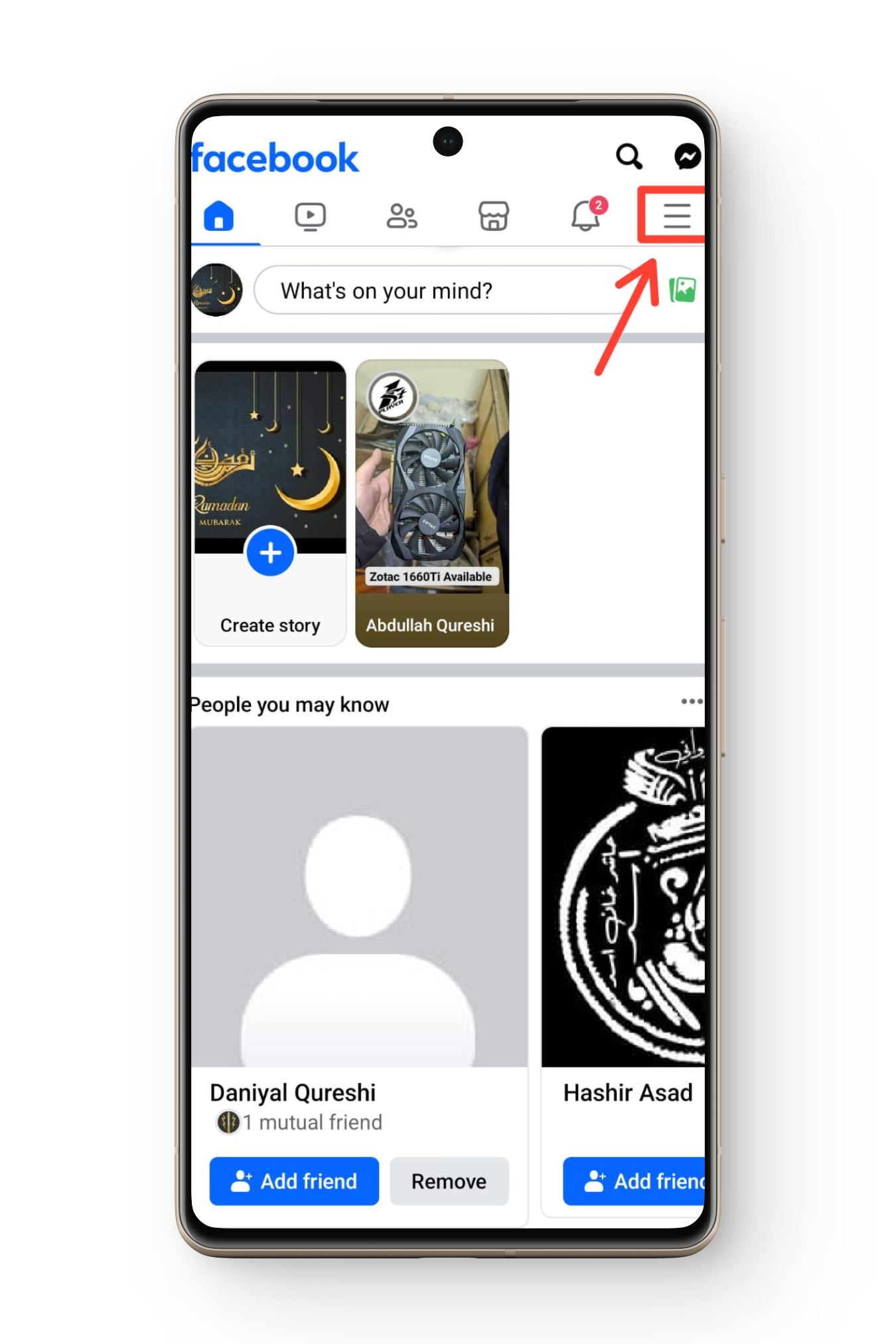 - Launch the Facebook application on your phone and tap on the hamburger menu in the top-right of the screen.