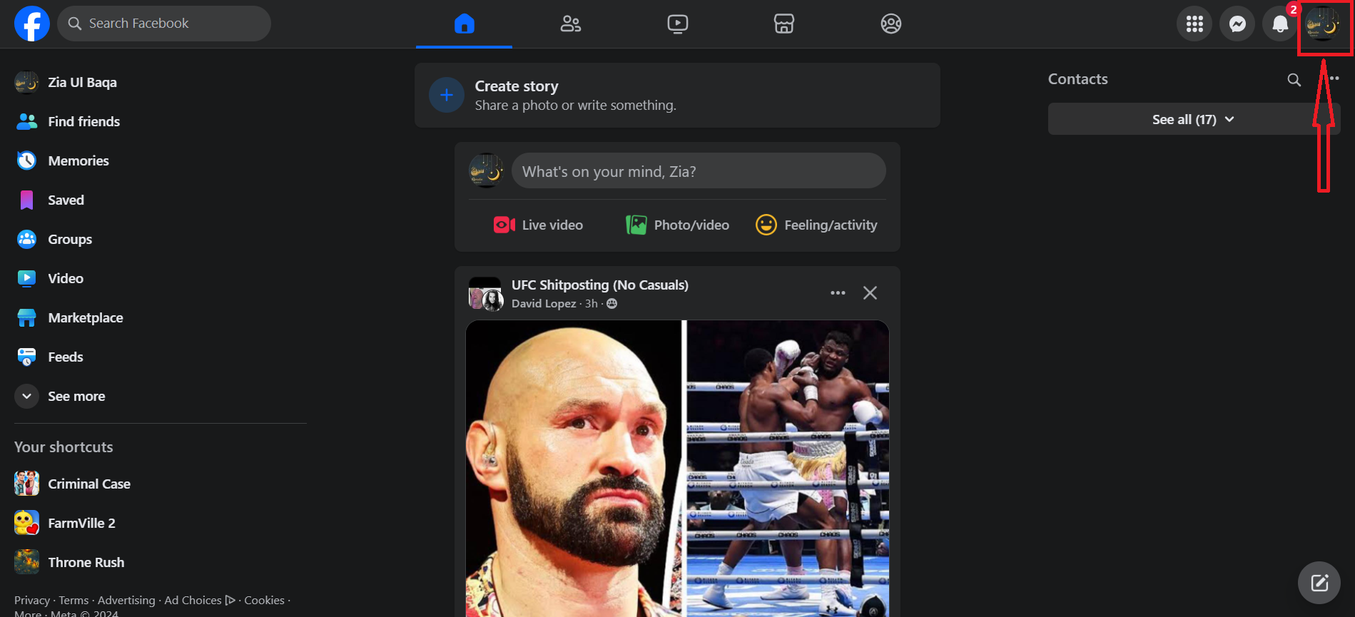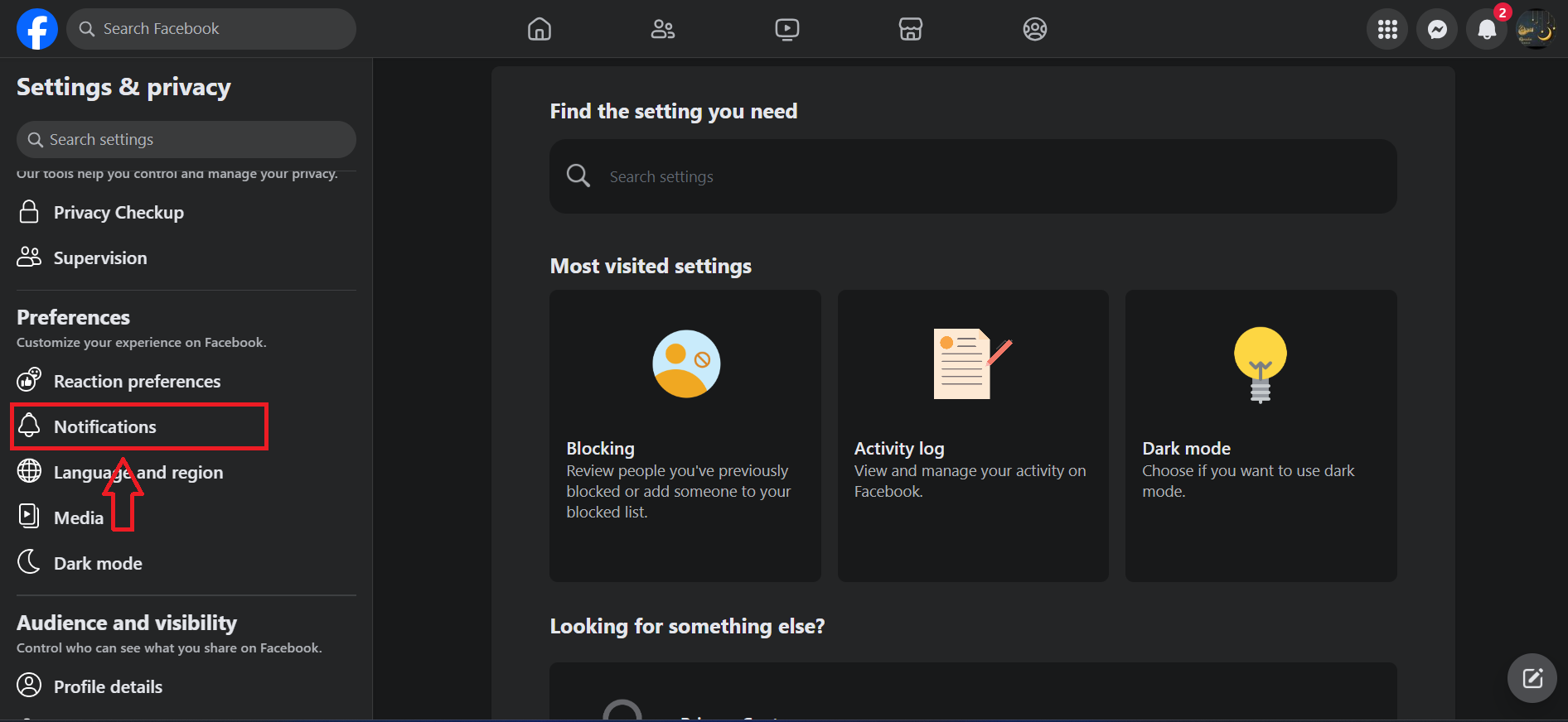 Click on your profile - Select Settings & privacy and then click on Settings.