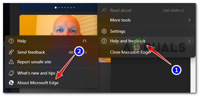 - Next, from the secondary context menu, click on About Microsoft Edge from the context menu that just appeared.