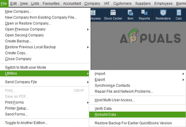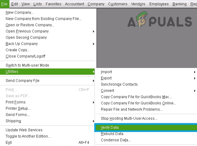 - After backing up the file, again open the File menu of QuickBooks and then hoover over Utilities.