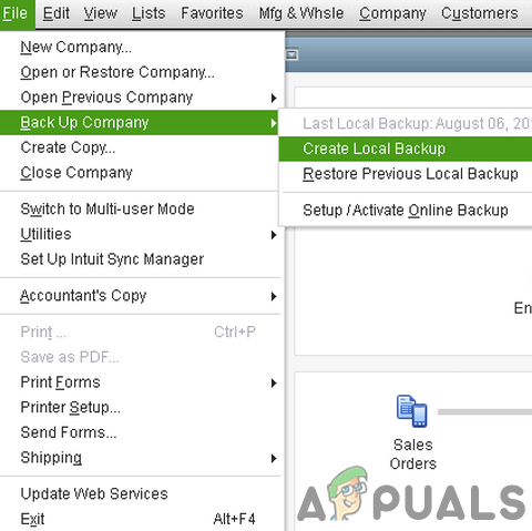 - Now hoover over Back Up Company and then Create Local Backup. Now follow the prompts on your screen to create a manual back up of your company file.