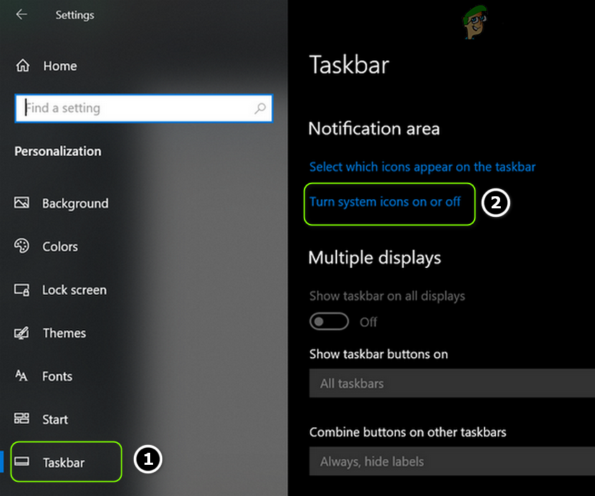 - Scroll to Notification Area and open Turn System Icons on or Off.