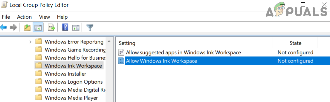 - In the right pane, double-click Allow Windows Ink Workspace and select Enabled.