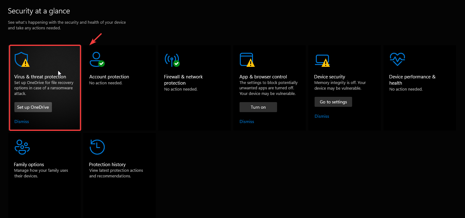 - In the Windows Security window, select the option labeled Virus & Threat Protection.