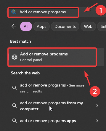 - Press the Win key on your keyboard and type Add or Remove Programs in the search bar.