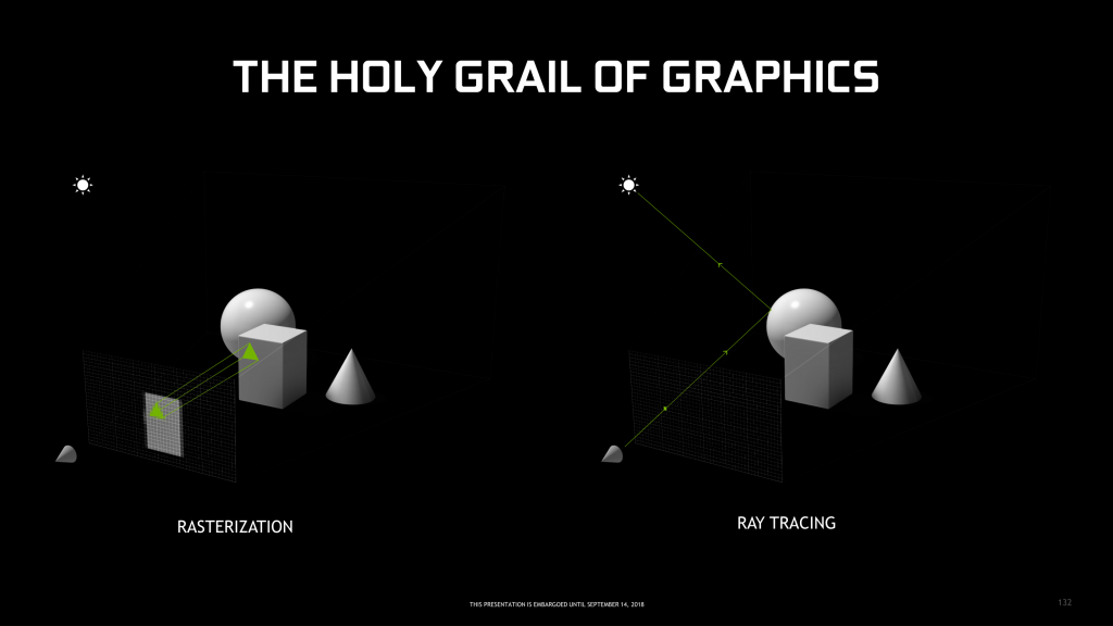 Nvidia has also coined the term “Giga Rays” to give users an idea about the relative Ray Tracing capabilities of its RTX Graphics Cards. Nvidia says that 5 Giga Rays per second is the minimum amount of virtual light ideally required to fully illuminate a typical room in a video game environment. The GeForce RTX 2070 offers 5 Giga Rays/sec, while the RTX 2080 offers 8 Giga Rays per second. The RTX 2080Ti offers a whopping 10 Giga Rays/sec. It is a somewhat arbitrary unit though so it should only be used generally to show relative performance expectations.