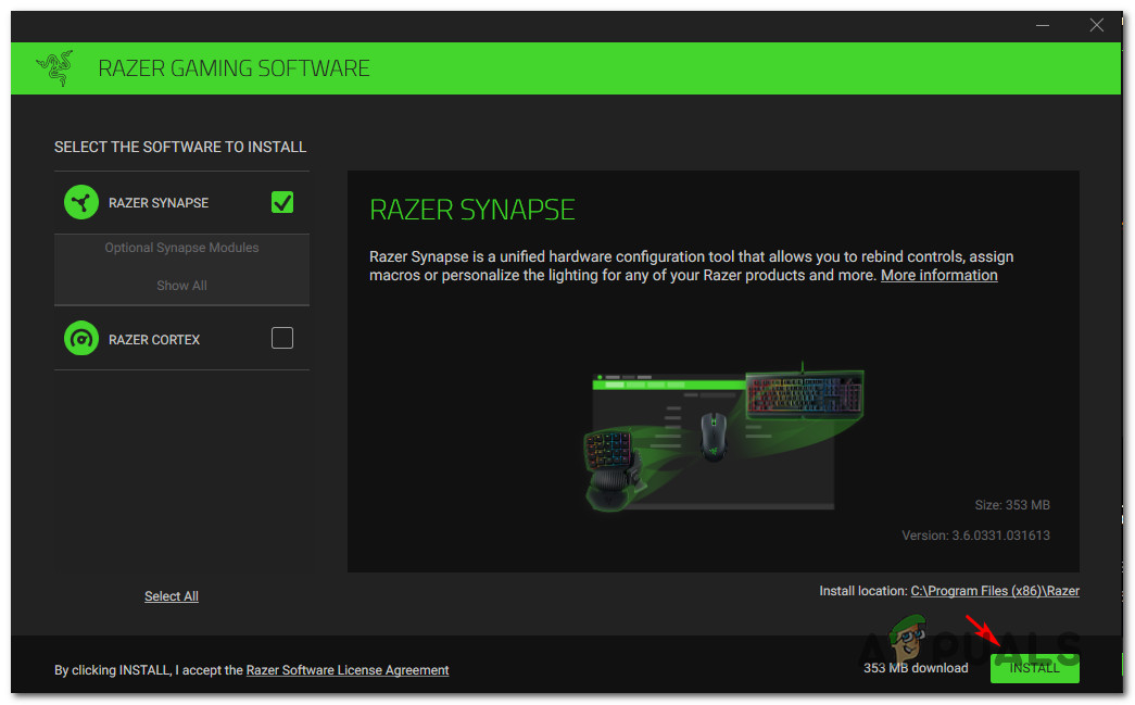 Installing the latest version of Razer Synapse - After the installation is complete, restart your computer and see if the problem is now fixed.