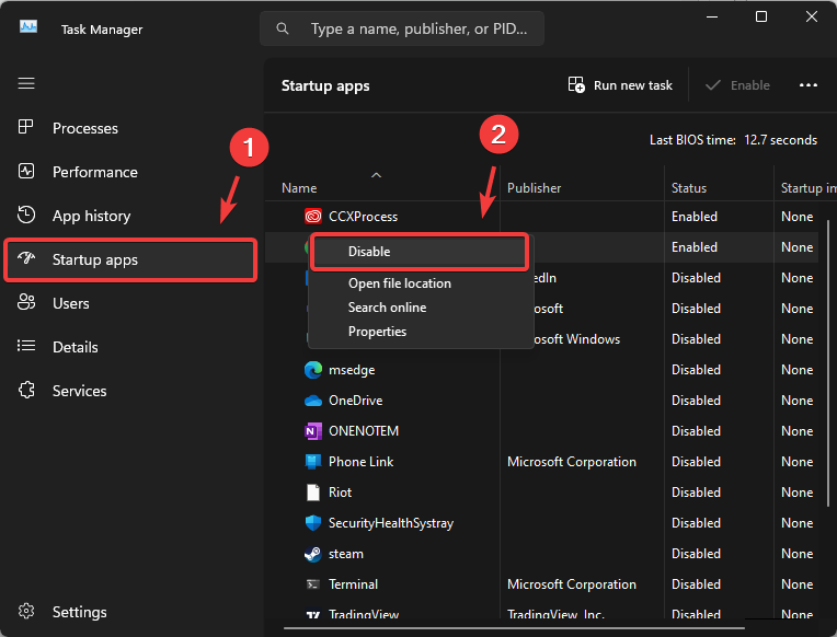 - In Task Manager, select Startup Apps from the left pane.