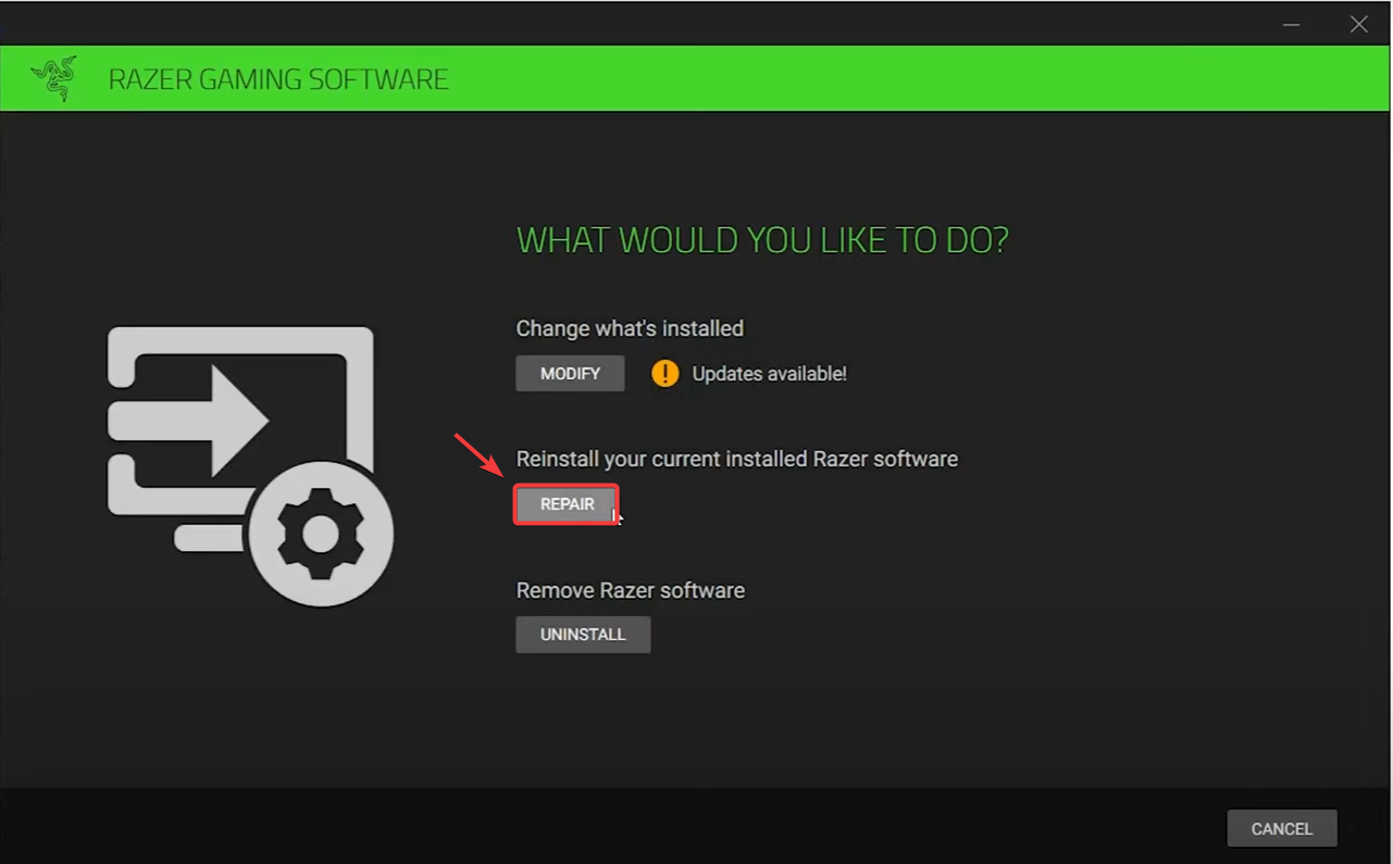 Repairing Razer Synapse will restore missing files and install essential components without affecting user settings. If the issue persists, it could be due to corrupted files. In this case, repairing Razer Synapse should resolve the problem.