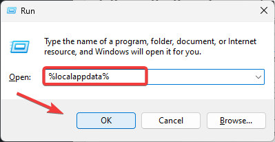 - Type %localappdata% and press Enter to open the appdata folder.
