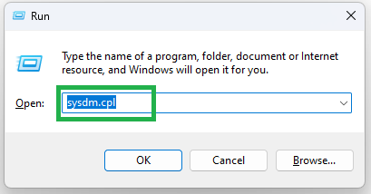 - Press Windows+R to open Run and type “sysdm.cpl” then press OK or Enter on your keyboard.
