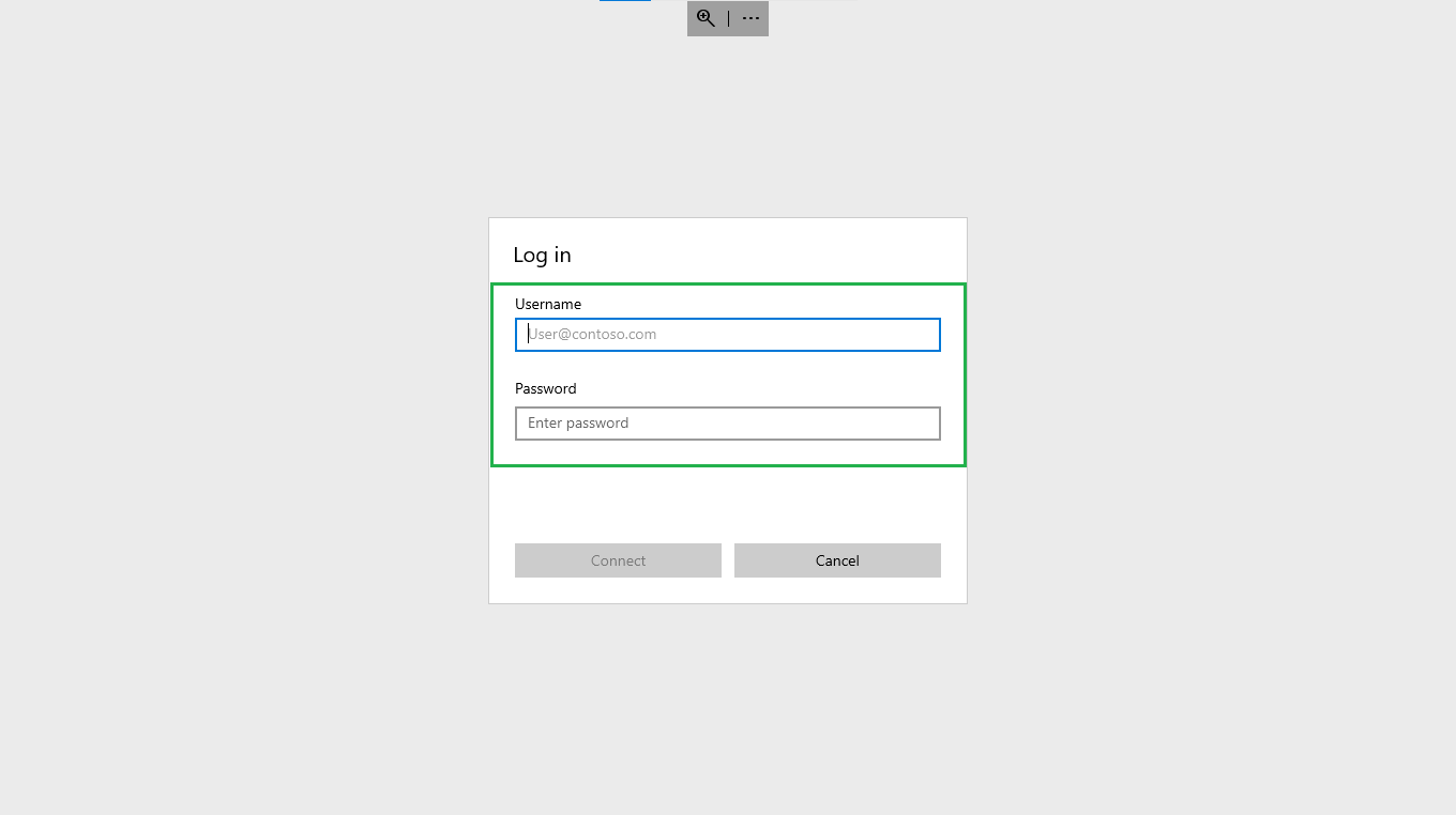 Remote Desktop App Connection - After entering all of your information, click the Save button. Upon pressing the save button, the Remote Desktop software will launch a fullscreen version of the connection. When you turn on the connection, the app will prompt you for your Username and Password, which you can enter in order to gain access to it.