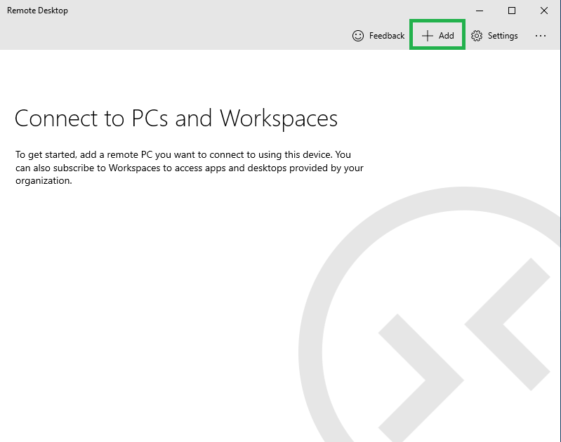 Remote Desktop Application - After installation is completed, open the app and click on the Add button on the top right. This will save the Remote Desktop you are connecting to for future use.
