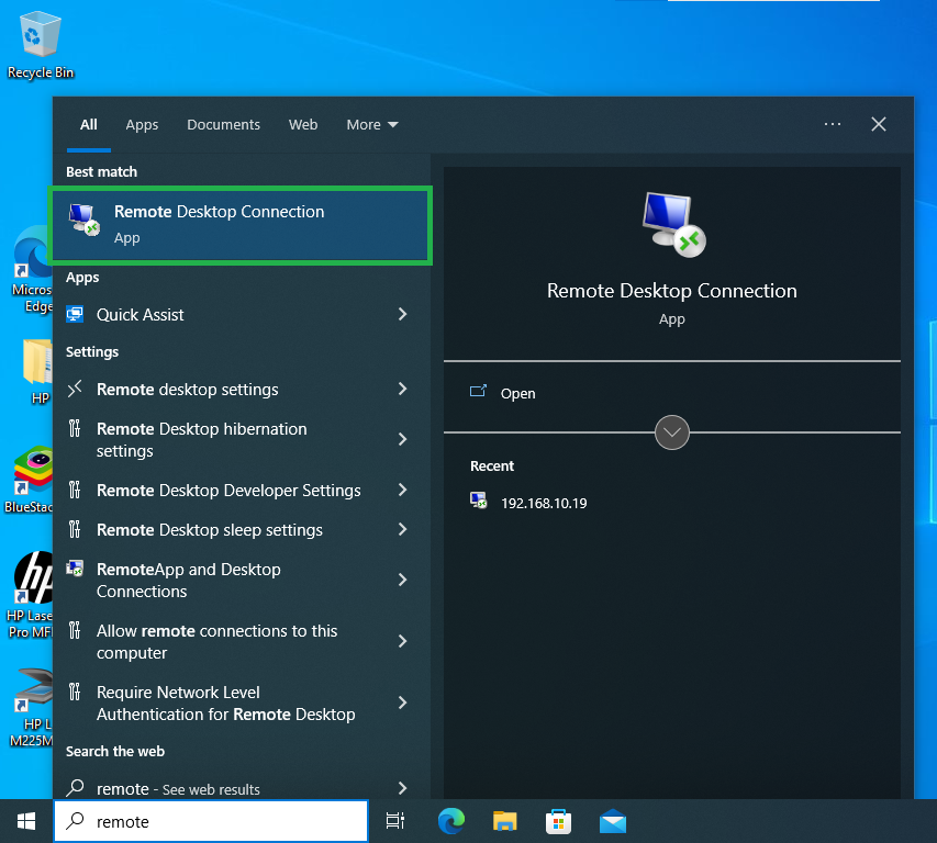 - Press the Windows key for the “Remote Desktop Connection” app in the Start Menu.