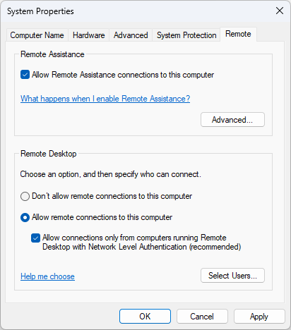 Remote Desktop will now be enabled on your computer.