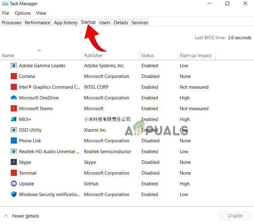 - Now click on the Startup option and search for the Realtek services.