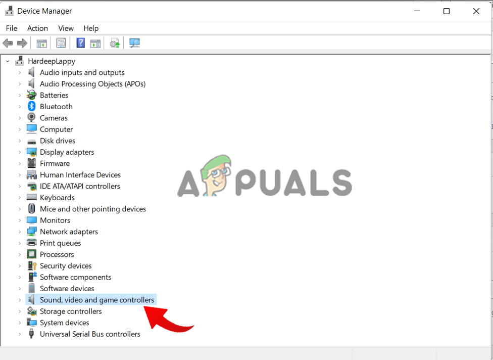 - Click the Sound, video, and game controllers option to expand it.