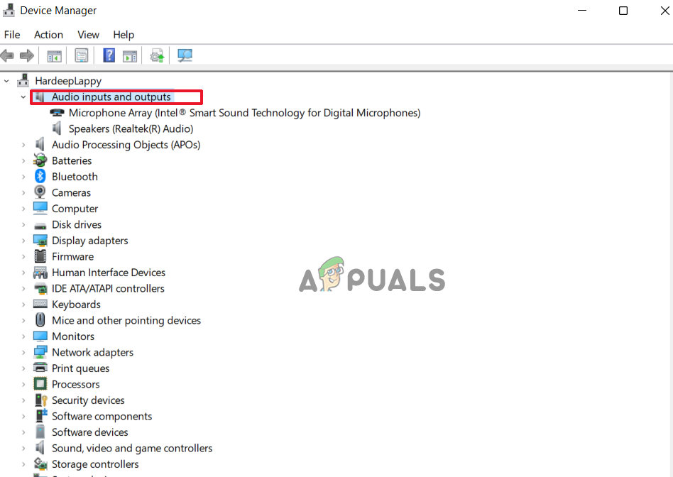 Open Device Manager - Now click on the Audio inputs and outputs option to expand it.