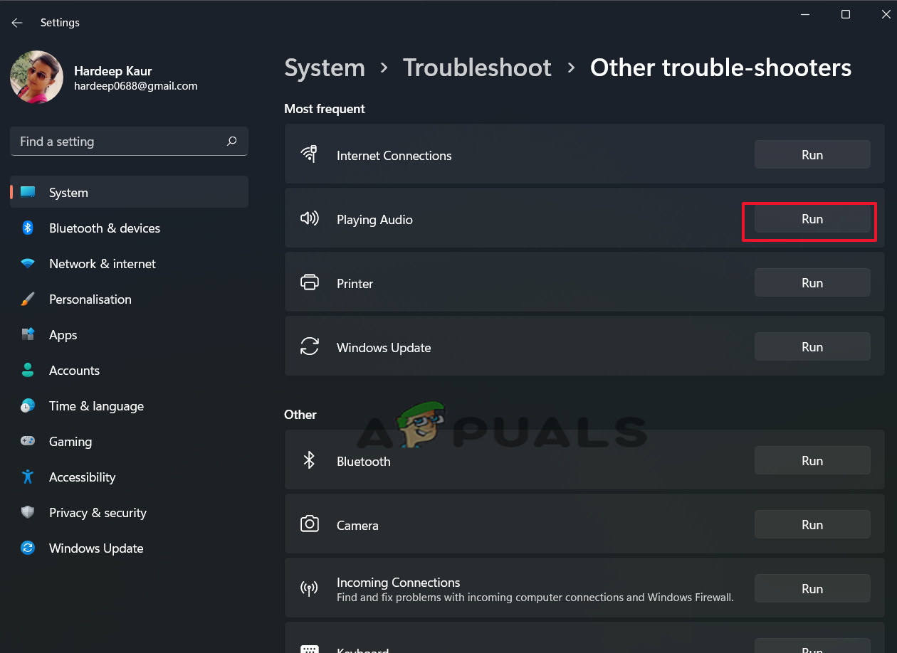 Click on the Run button beside the Play audio option. - Now follow the steps, run the troubleshooter, and check if the issue is resolved.