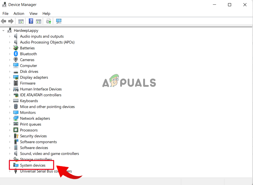 - Now click on the System Devices to expand it.