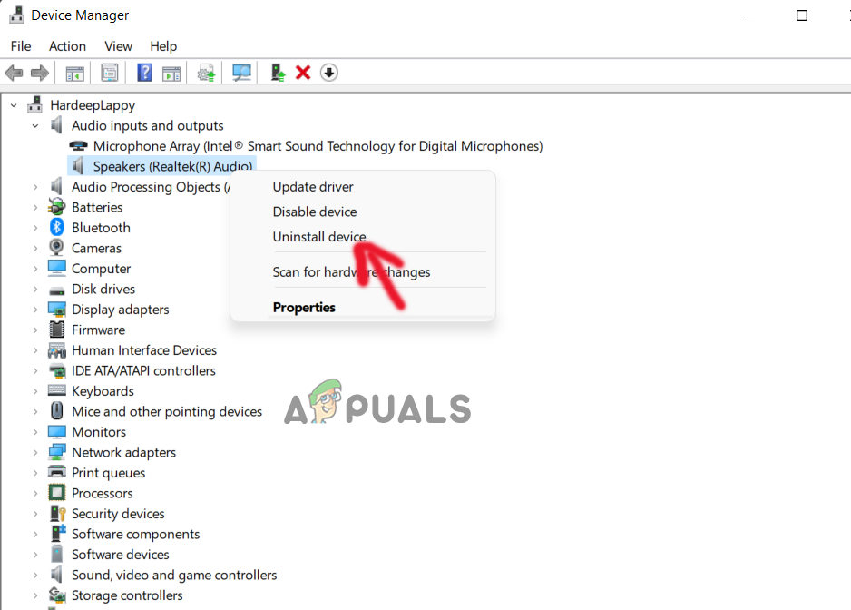 Click on the Audio inputs and outputs option - Then, right-click on the Realtek driver and click on the Uninstall driver option.