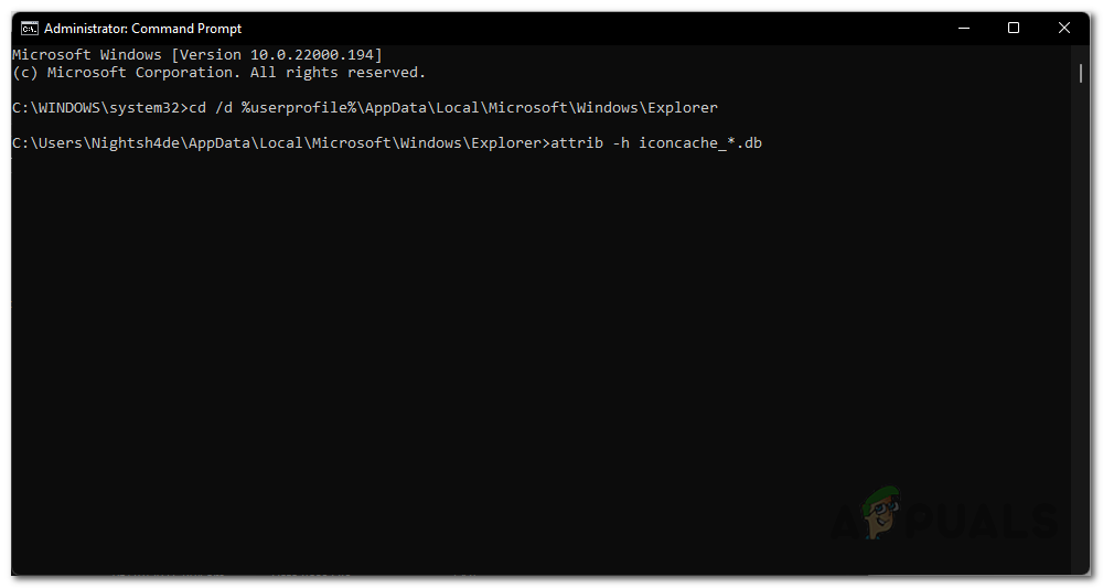 Another way of deleting the icon cache would be to use the command prompt. This is a bit easier as compared to the first method as you just have to enter a set of commands to get the job done. If you do not wish to use the command prompt either, you can jump to the next method down below where you can use a script to get the job done. To do this, follow the instructions down below: