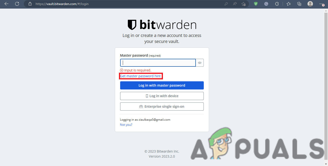 - Go to the Bitwarden website and enter your Email address in the prompt.