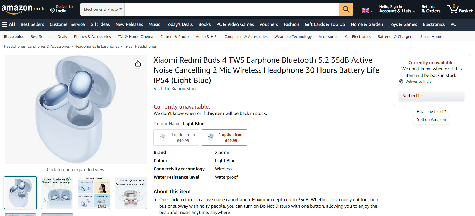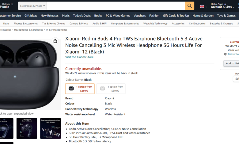 Redmi Buds 4 and Redmi Buds 4 Pro UK prices leaked through early Amazon listing