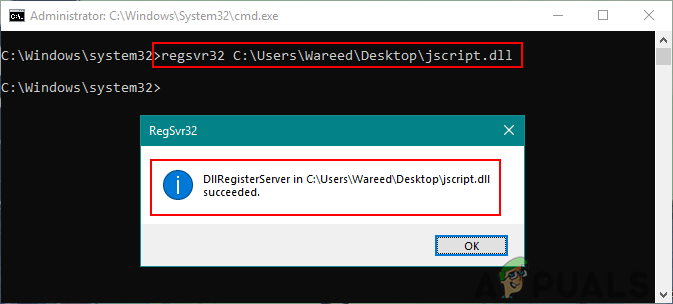 Note: jscript.dll is the file name that you can change to whatever file you want to register.