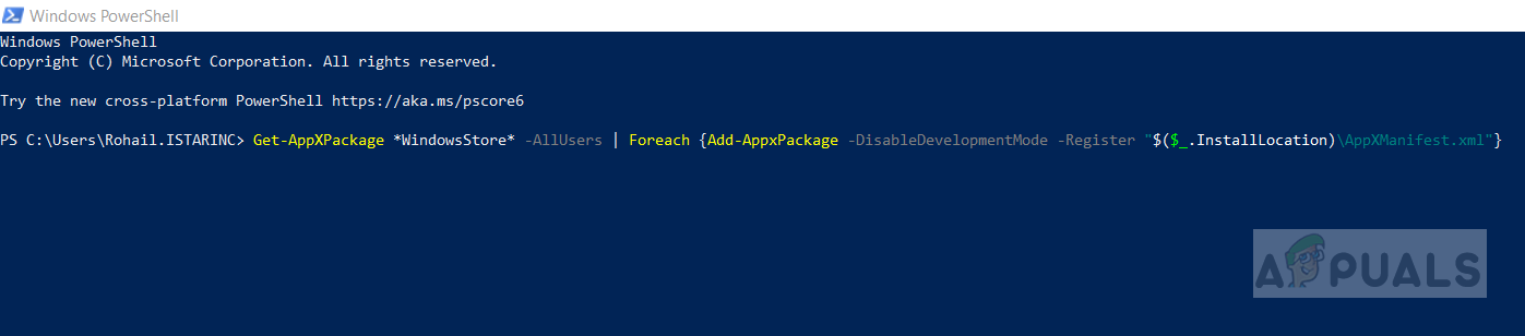 - Once you’re done you can verify the Microsoft Store AppX Package by typing in the following command in the Windows Power Shell. This will list down the Microsoft Store App details along with all the dependencies.