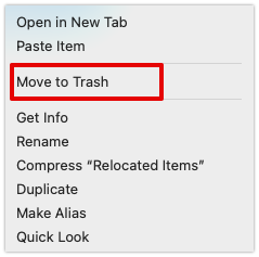 Also, if the folder is on your Desktop, you can simply make a Right-Click or tap with two fingers and Move to Trash. This will delete only the shortcut from the system. Let us see how to remove the Relocated Folder from macOS.
