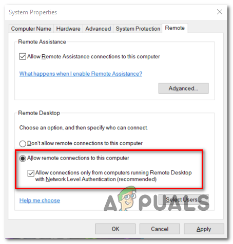 - Press Windows key + R to open a Run dialog box. Type ‘SystemPropertiesRemote.exe’ and press Enter to open the System Properties screen.