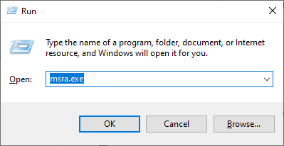 - Press Windows key + R to open a Run dialog box. Type ‘msra.exe’ and press Enter to open the Windows Remote Assistance wizard.