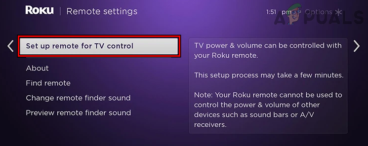 Set Up Remote for TV Control in the Roku Settings - Then follow the prompts on the screen to complete the process and afterward, check if the remote’s volume issue is resolved.