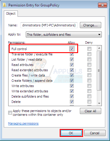 - Check the box that says Full Control