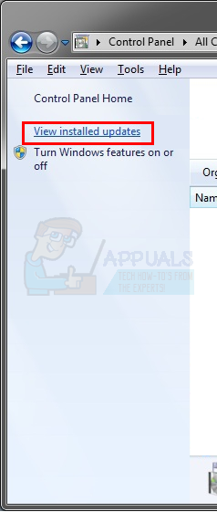 - Click View installed updates from the left top