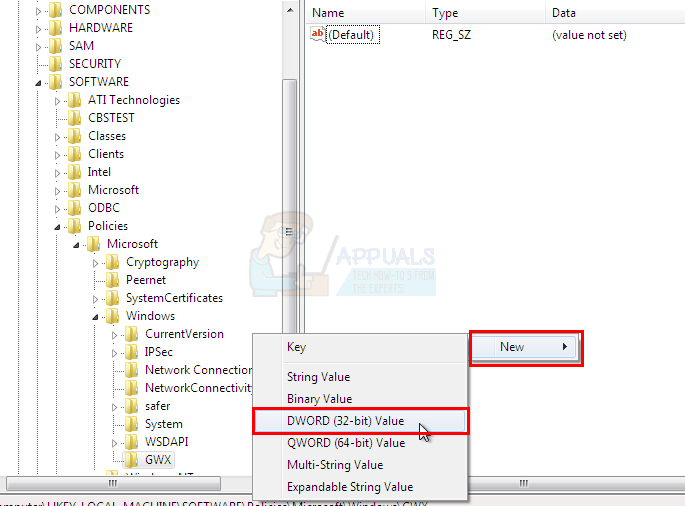 - Name the newly create key “GWX” (without quotes) and press Enter