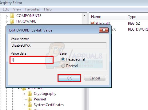 - Name the newly created DWORD value “DiableGWX” (without quotes) and press Enter