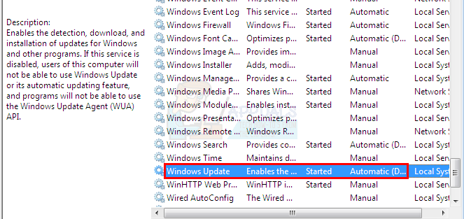 - Locate Windows Update service and double click it