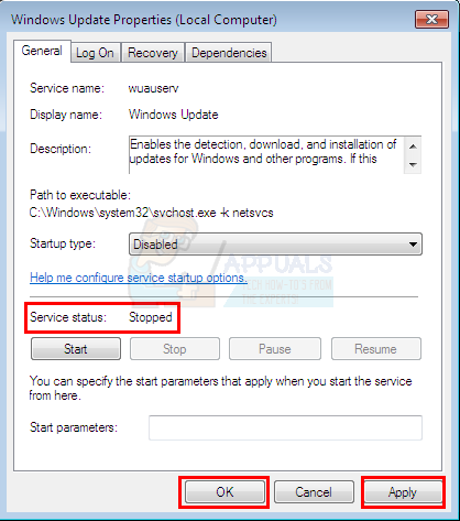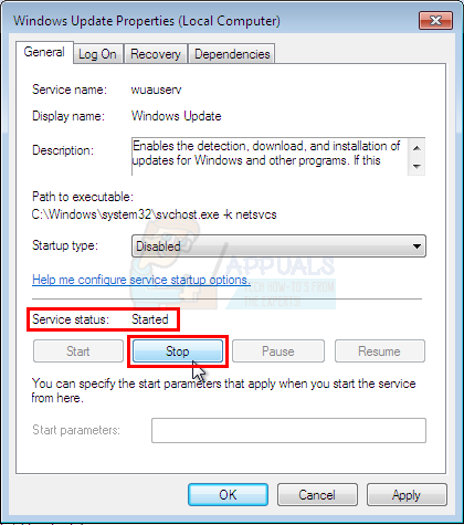 - Click Stop if the Service Status is Running