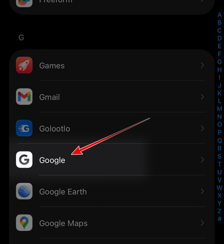 - Scroll down the list and tap Google.