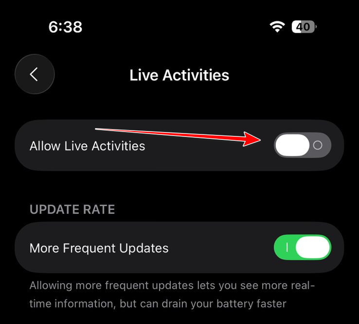 - Turn off Allow Live Activities.