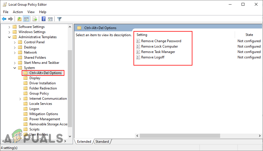 Changing some of the settings are not possible by going through the Control Panel or Settings app on Windows. However, the Local Group Policy Editor and Registry Editor can be used to configure it. There are four options that can be removed from the Ctrl + Alt + Del screen. You can get the idea about removing each option by the names of the settings in the below method.