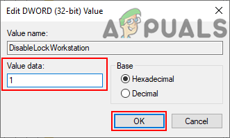 Creating value for removing lock option - Double-click on the DisableLockWorkstation value to open it up and then change the value data to 1. This will remove the lock option from the screen.