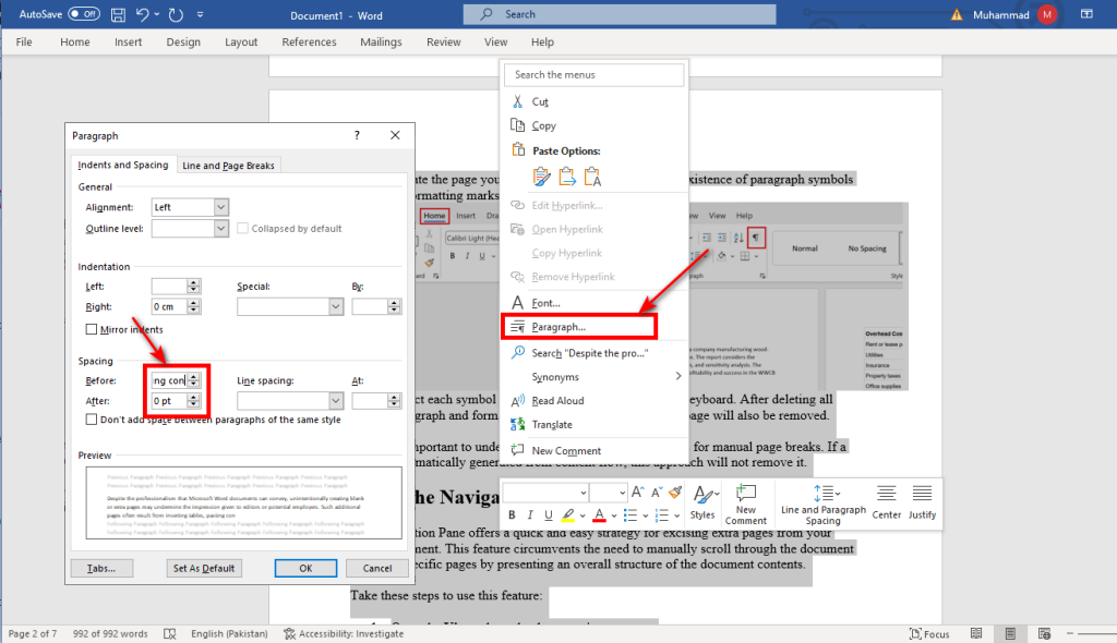 Similar to margins, paragraph spacing can also contribute to the creation of unwanted pages. Reducing the space before or after paragraphs can pull text back, removing the extra page.
