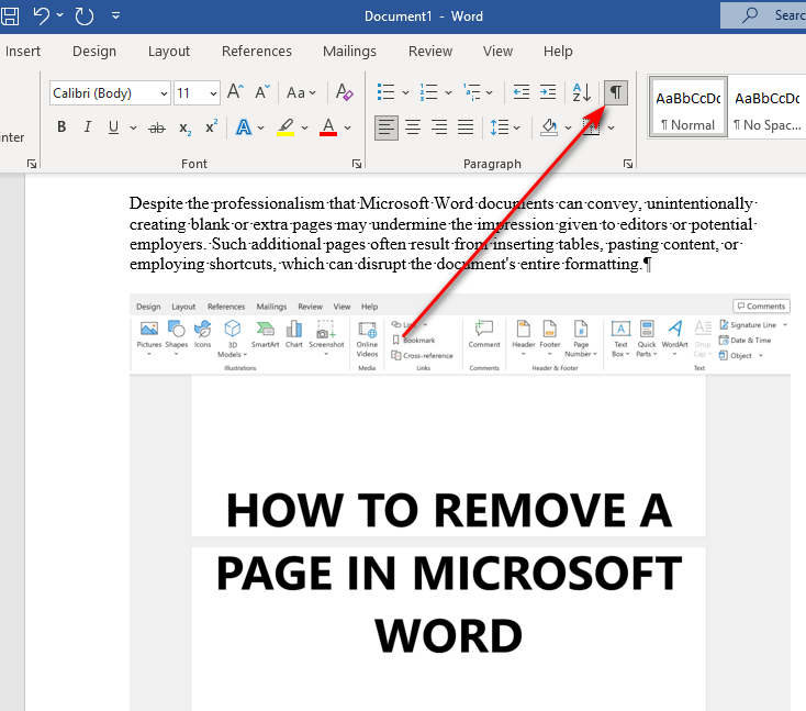 - Locate the page you want to delete and check for the existence of paragraph symbols or formatting marks.