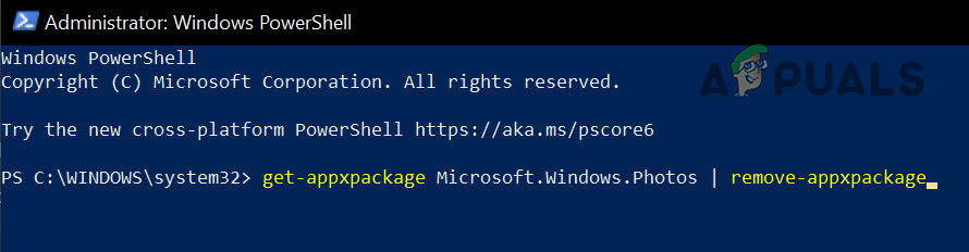 get-appxpackage Microsoft.Windows.Photos | remove-appxpackage