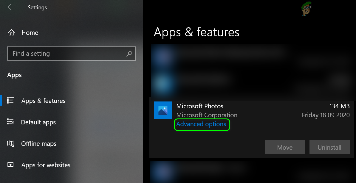 - Now open Apps and expand Microsoft Photos. Then click on Advanced Options.