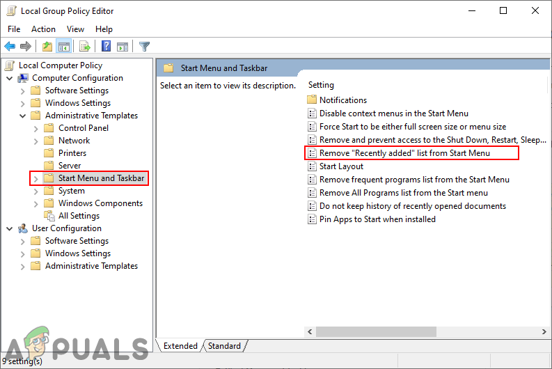 Another method for disabling the recently added list is by using the policy setting in the Local Group Policy Editor. This will completely disable the list and users will be unable to enable it from the Settings app. The changes may not take effect soon, but a restart will apply the changes to your system. Follow the below steps to try it out: